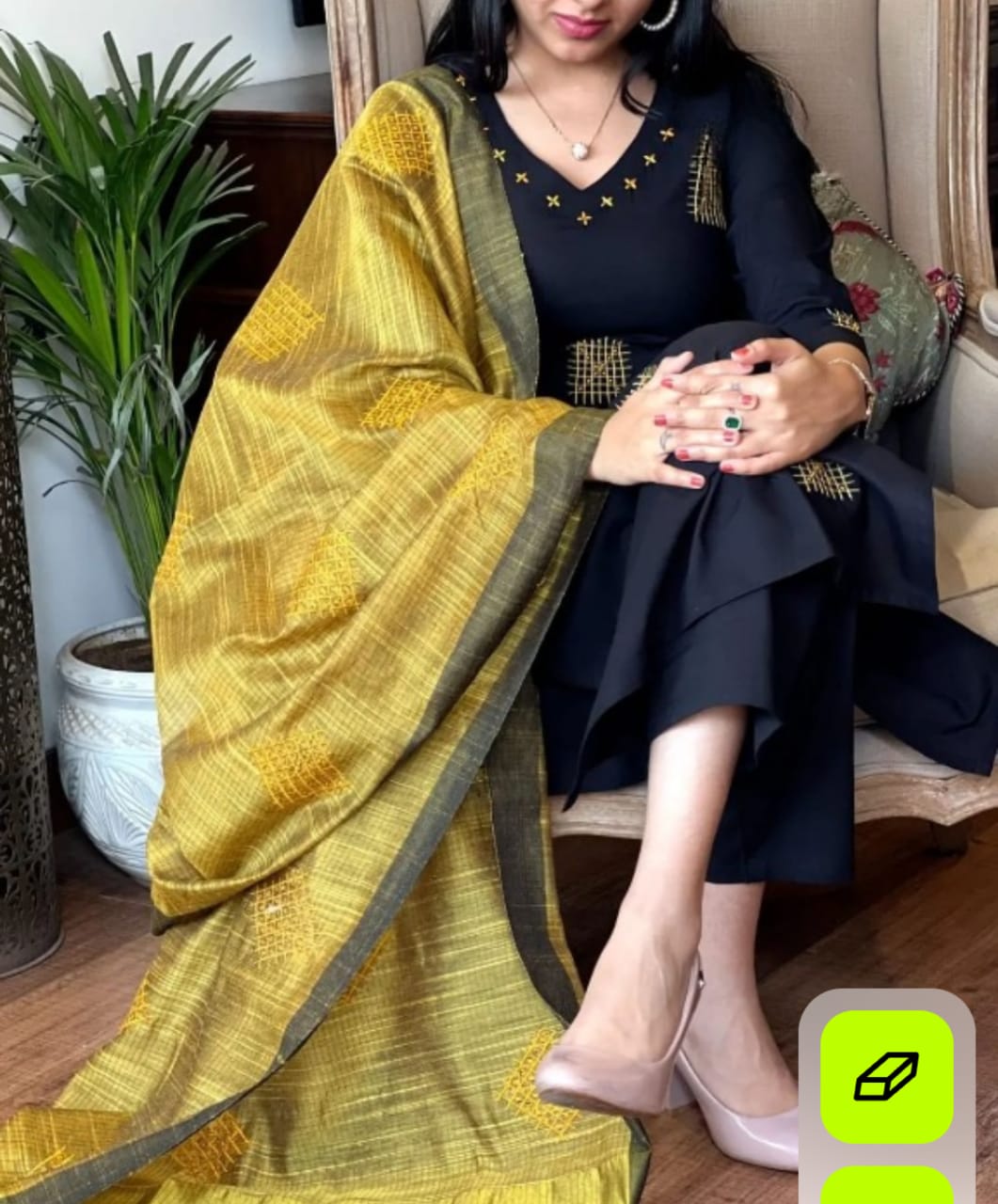 | Ornamentation | Thread work, Bhagalpuru Silk Dupatta |