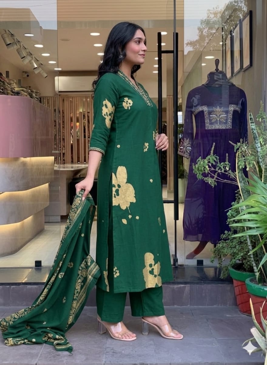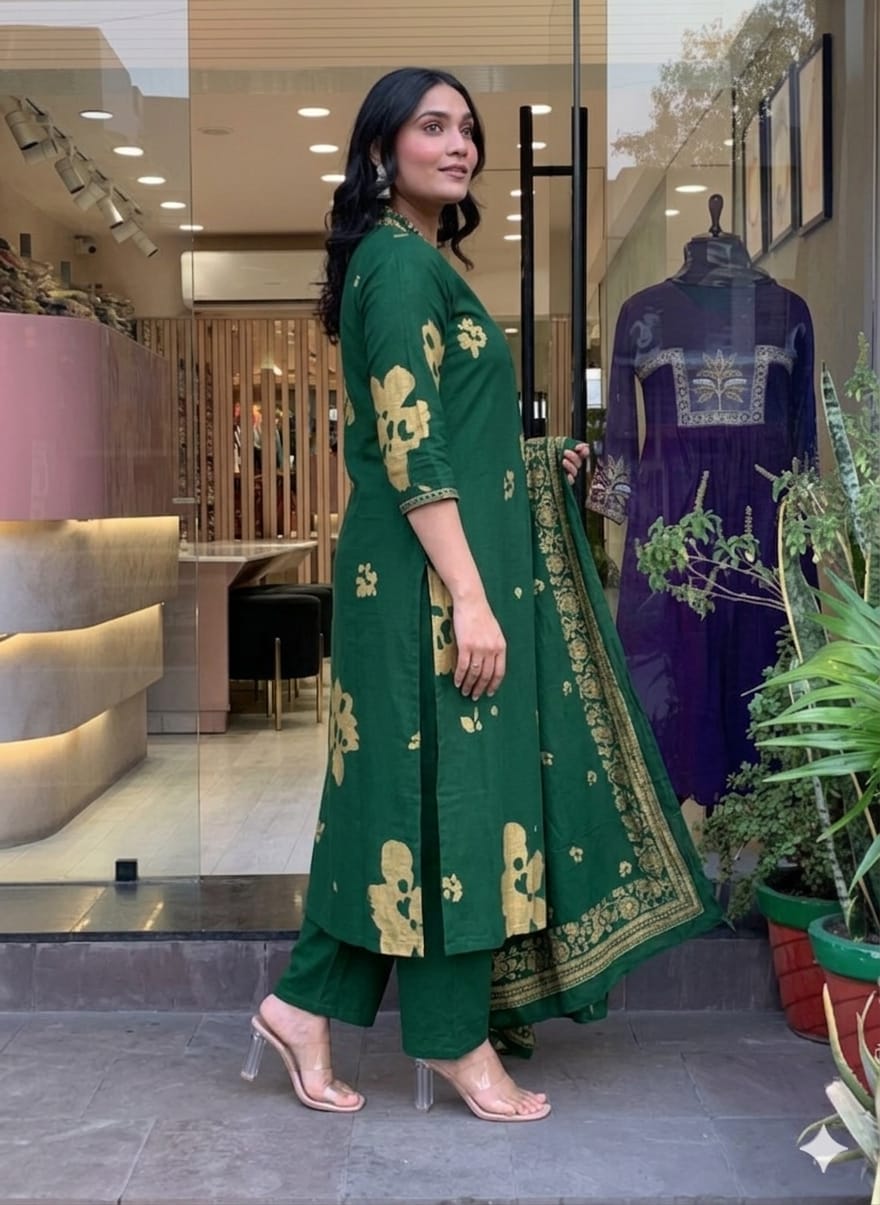 | Ornamentation | Dress like a ‘day-dream’ in this pretty straight suit set. Featuring flowy pattern kurta with straight pants and matching dupatta, this set is exclusively made with Cotton Fabric |