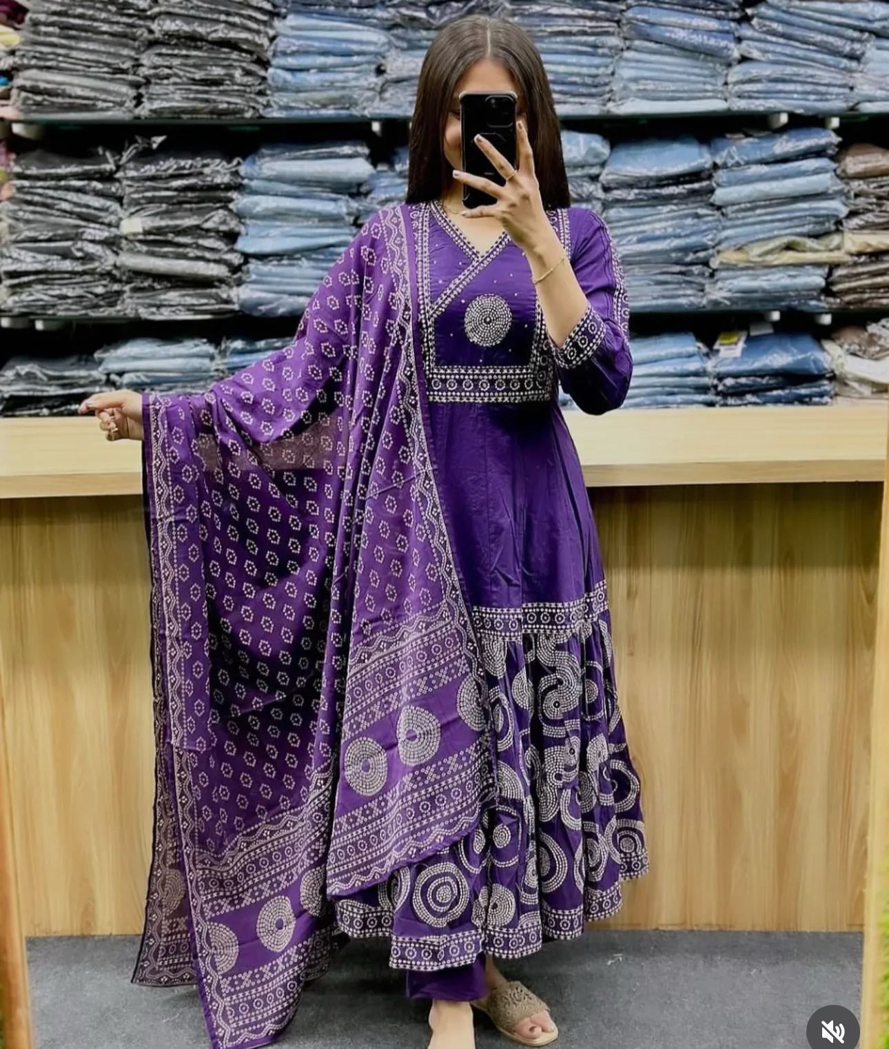 Anarkali Kurti With beautiful embroidery work & flair Straight cotton pant Cotton malmal full size dupatta Beautiful anarkali style with sip work on yoke |